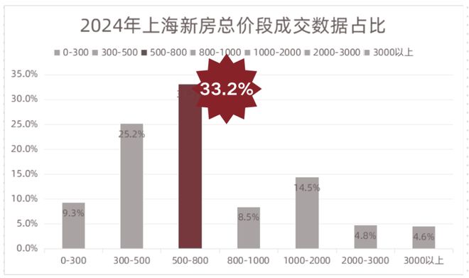 另外,根据去年上海新房市场表现,500-800万总价段的房源交易占比高达33.2%,成为最热门的购房区间······